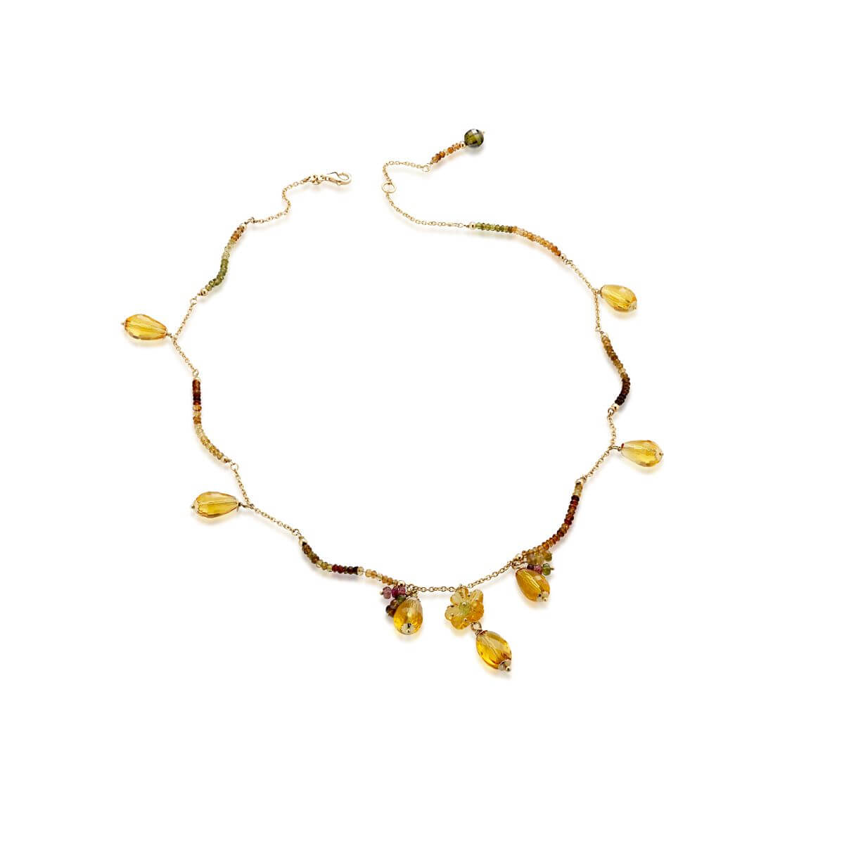 Collana con rodolite, zaffiri rosa e diamante taglio 8/8