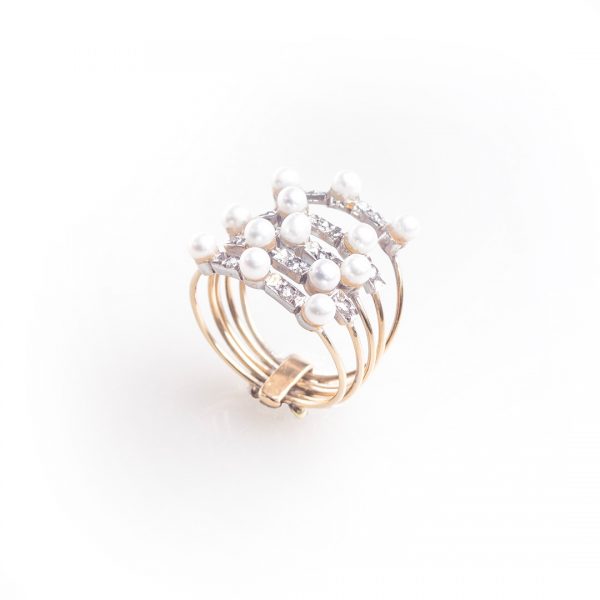 Pearl and diamond ring