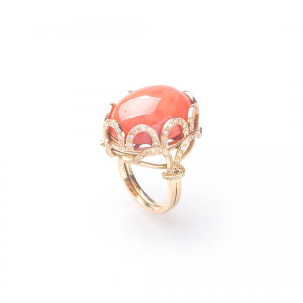 Coral and diamond ring