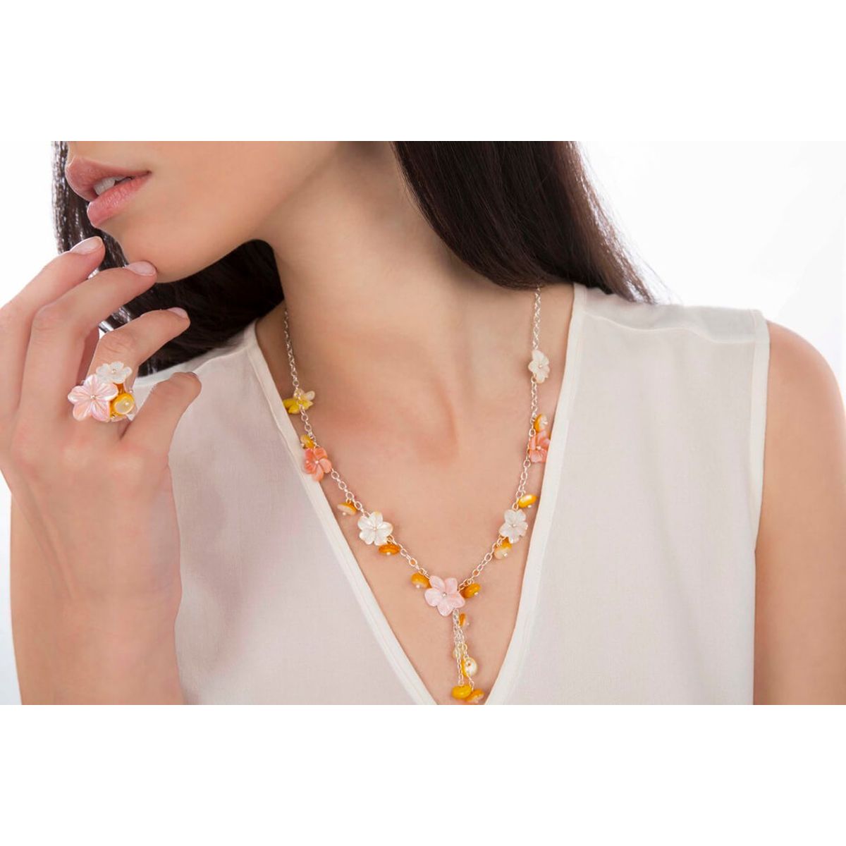 Mother of pearl flower and bead necklace