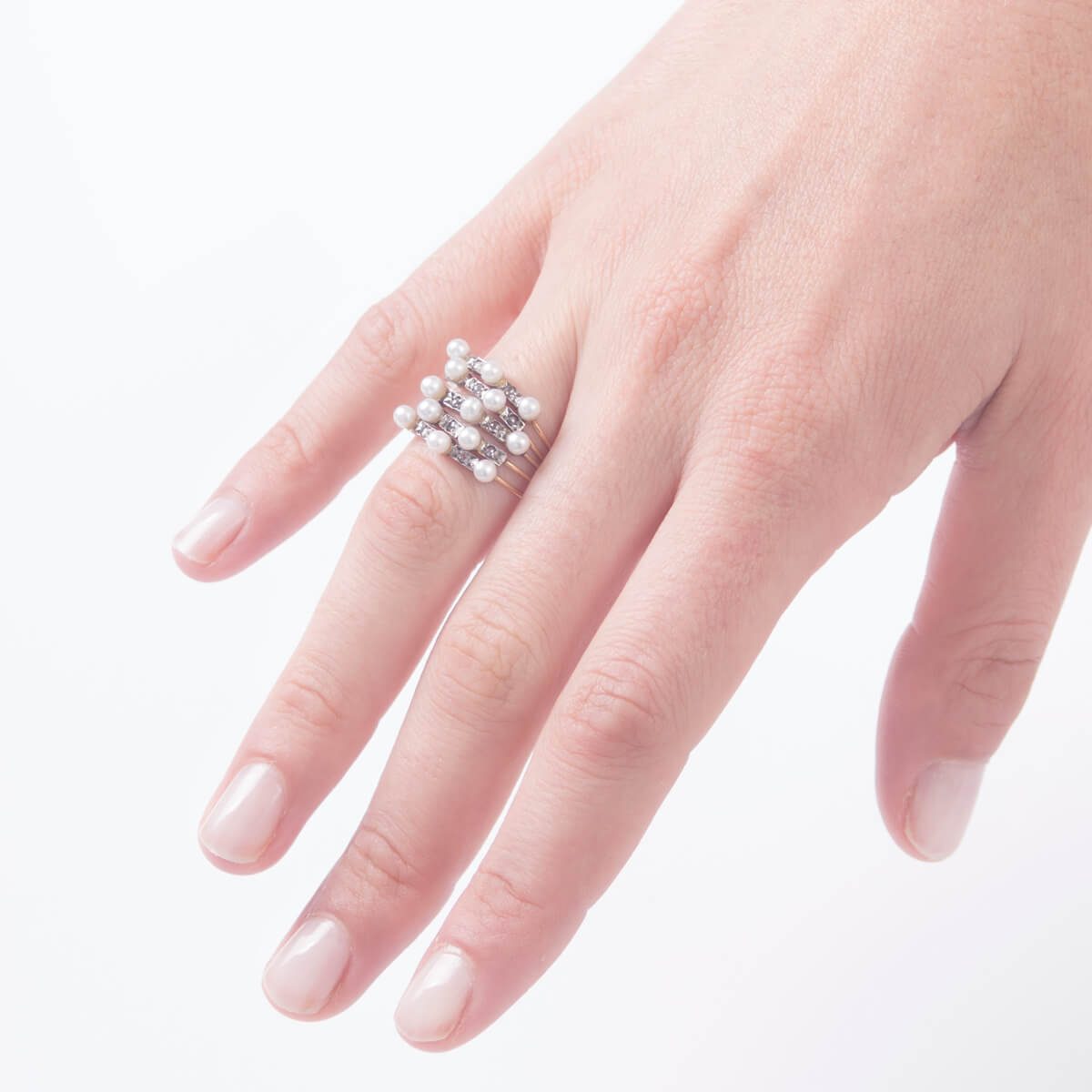 Pearl and diamond ring