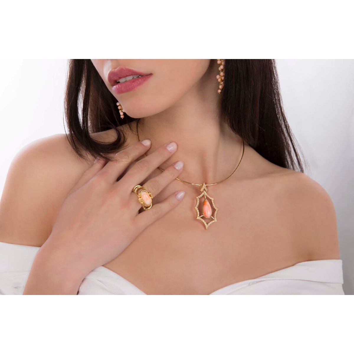 Pink coral diamond pendant